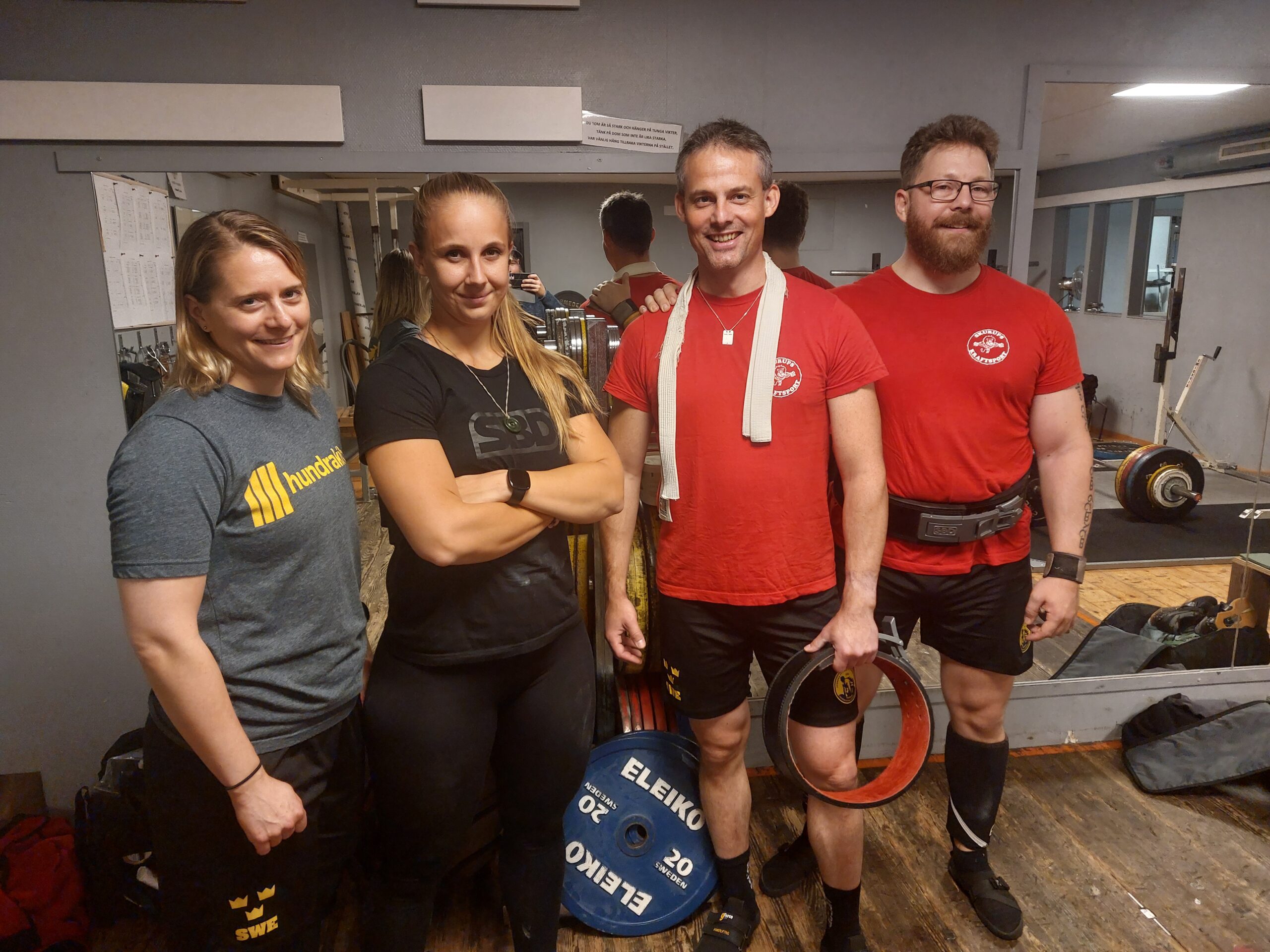 Inne hos de som tränar är stämningen god. Mellan lyften utbyts små skämt och kommentarer bland de fem som tränar. Carolin Larsson berättar att vissa dagar kan det vara upp till tolv personer i det lilla rummet. Hon har själv sysslat med sporten sedan 2016. Det hon gillar mest är gemenskapen och att man utmanar sig själv.